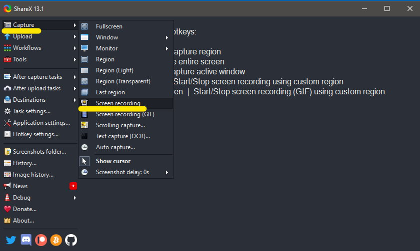 1. Download ShareX from https://getsharex.com/ , install, and run the program. The installation or the initial setup will ask you to download “ffmpeg.exe”. Allow it download.